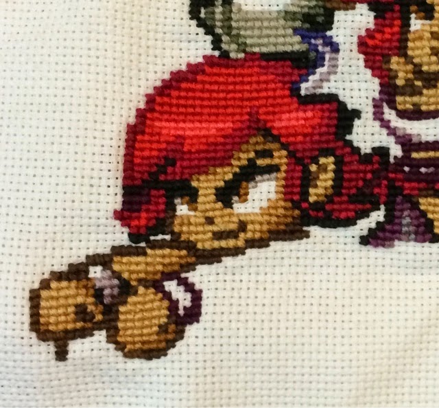 Basketball season has a nasty habit of drawing my attention away from cross stitching, but I have made some significant progress since my last update in January.